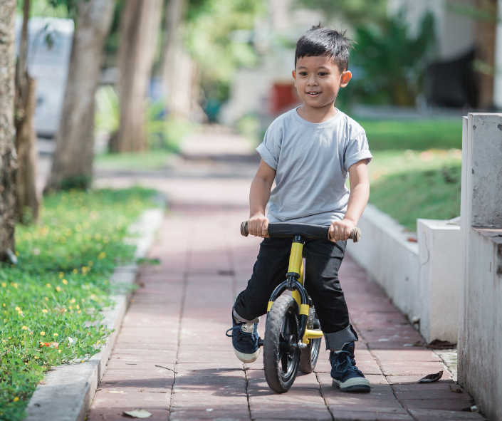 Balance bikes are basically small bikes without pedals. Children sit on the seat, kick off the ground, balance on two wheels, and steer the bike. The lack of pedals means that toddlers can simply put their feet down whenever they need to stop or slow down, which is both a safety feature and a way for them to gain control over their movements. Balance bikes are generally suitable for children between the ages of 18 months to 5 years old.